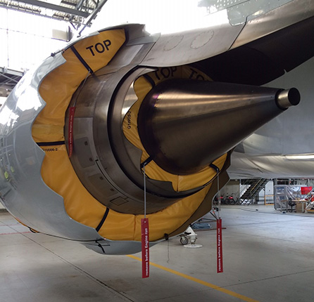 Our covers help you to save money and time by protecting your valuable engines from environmental influences such as heat, humidity, extreme cold, sand and dust. And that for many years to come. This is the most effective F.O.D. prevention device for all aircraft engines on the market today. Our long-standing customers include airlines, leasing companies, VIP customers and maintenance companies from many countries around the world.